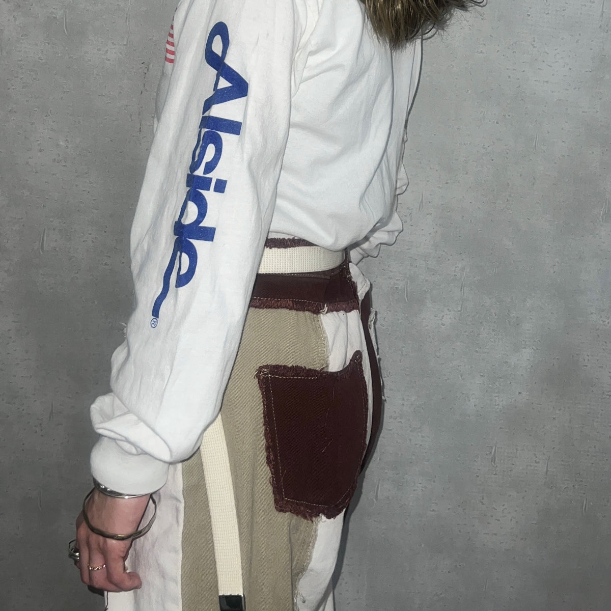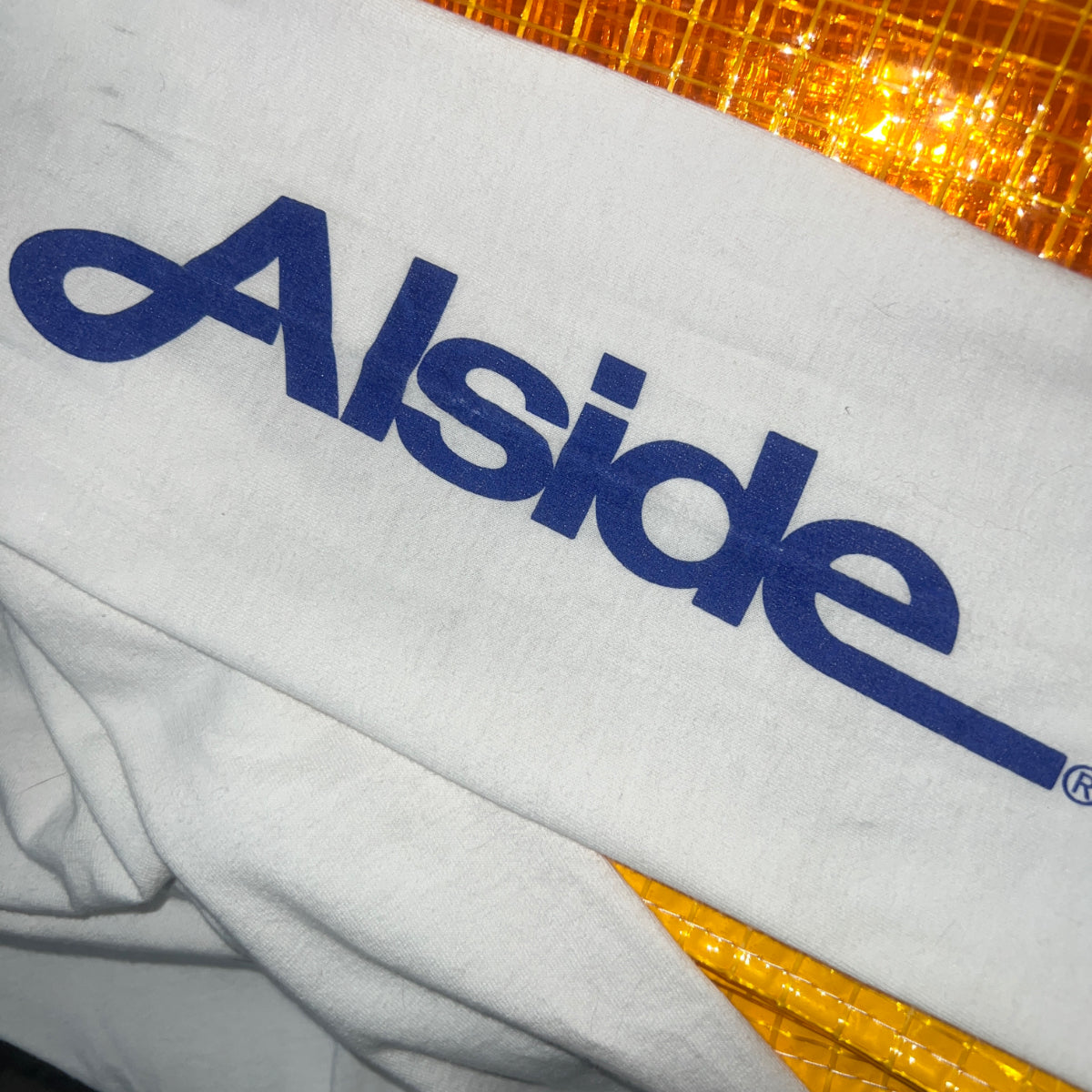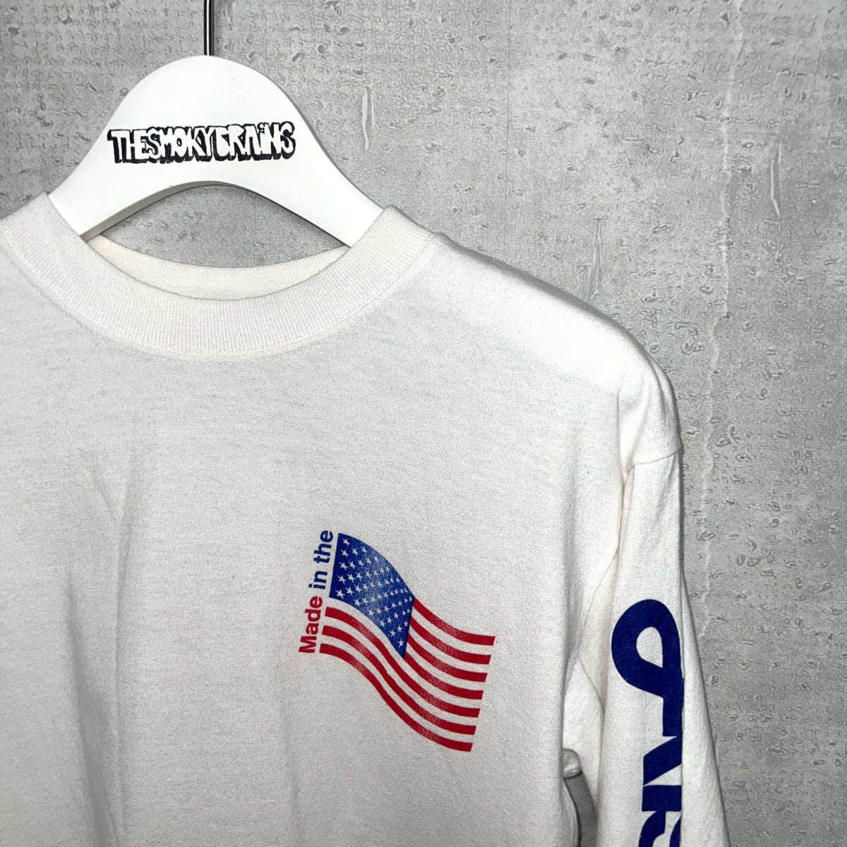 左スリーブの「Alside®︎」は、アメリカの老舗の外装建築製品を販売する会社のもので、Made in the U.S.A.を掲げた企業アイテム。