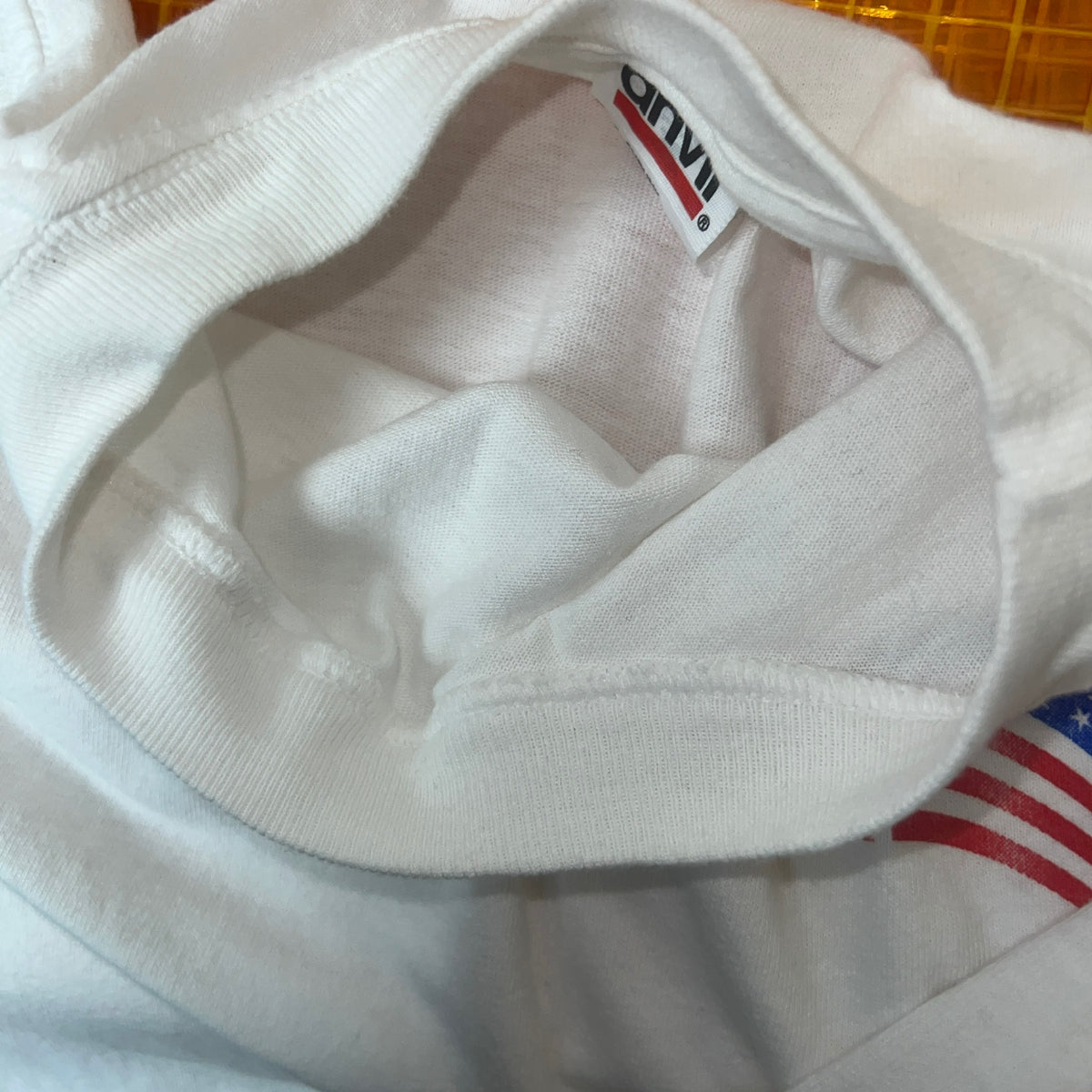 ネック周りや袖口などに黄ばみは無く、白にしては良好なコンディション