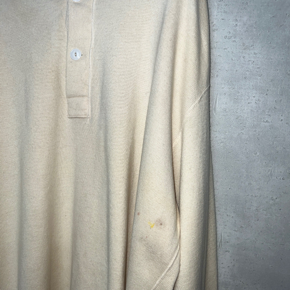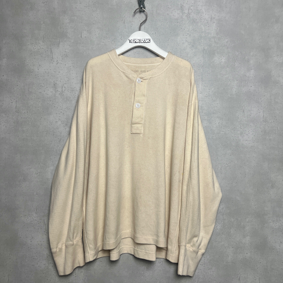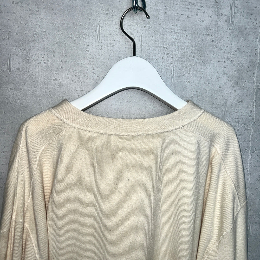 大きめのスウェットのように着られる上に、生成りの色味が渋く雰囲気がある。ウールとコットンが半々のためチクチクするようなこともなく、厚みがあってしっかりした生地感。