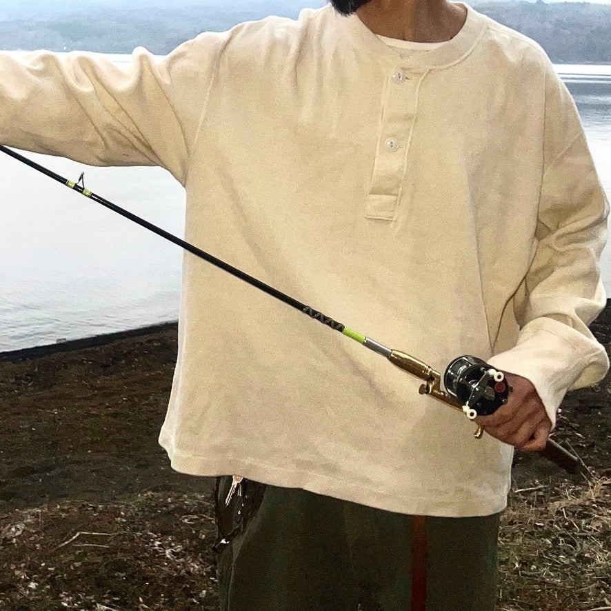ウール50/コットン50のヘンリーネックのアンダーシャツ。
