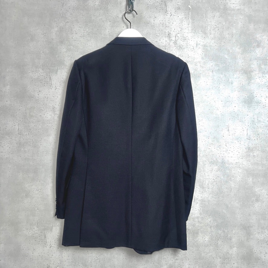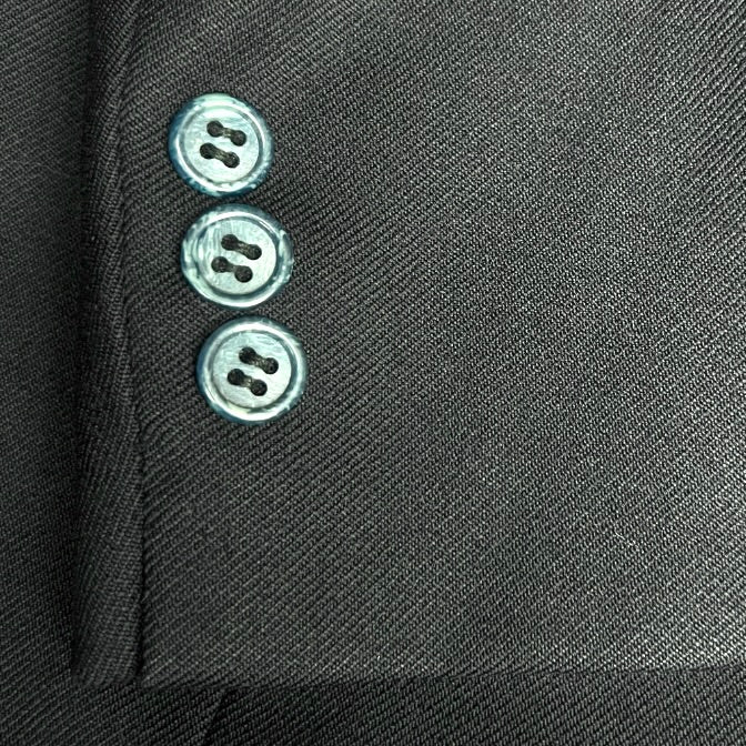 堅牢で滑らかな生地感、自然な模様と青みの美しいボタン、カラーとラペルの絶妙なバランスとフラワーホールがない洗練された雰囲気、ゴージラインの角度、肩周りのラインの美しさ…