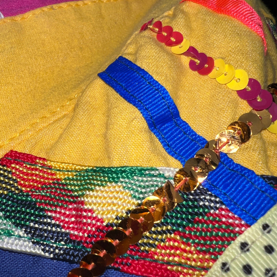 よく見るとかなり多くの種類のテープやリボンがランダムに用いられていて、これを生産するのにどれだけ手間暇がかかったか...と想像するだけでも驚く。