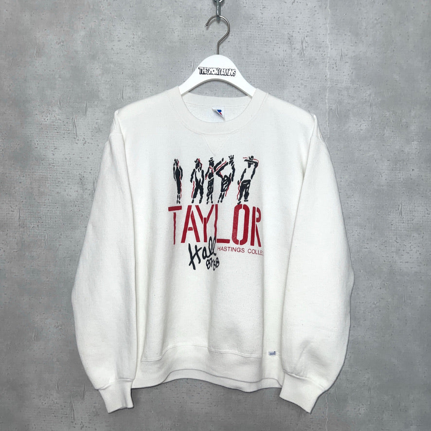 ラッセルの前V、丸胴のスウェット。前V(Vガゼットという)は首周りの補強であり汗止めとも言われる。