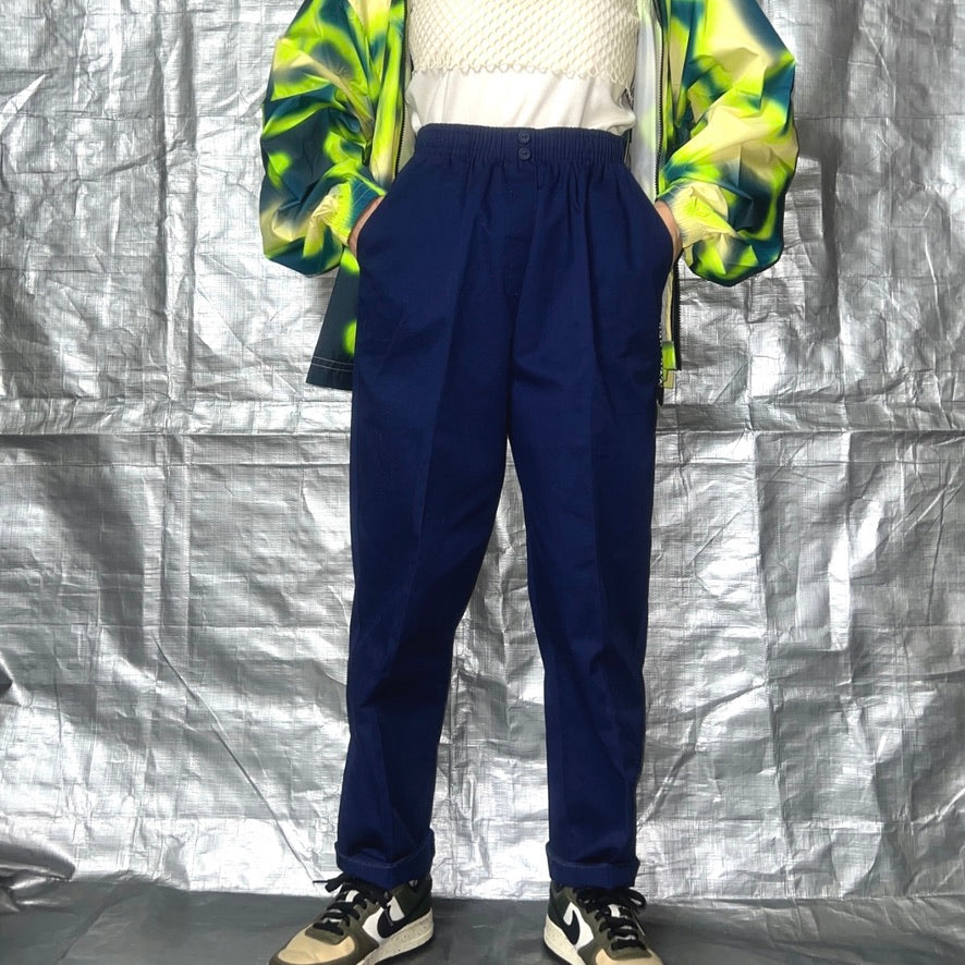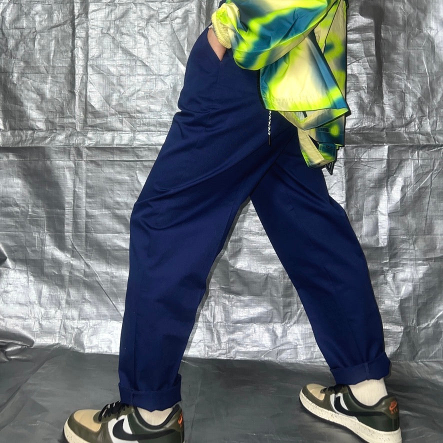 USA製ネイビーブルーの綿ポリツイルのスラックス。