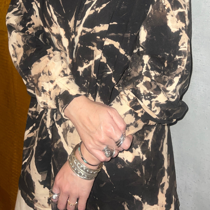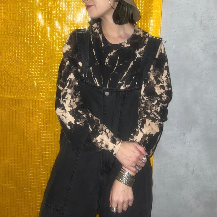 GILDANボディをブリーチしたこのロンTは、ヒッピー要素が強くなく、逆にモードなスタイリングにも落とし込み易いのが特徴。
