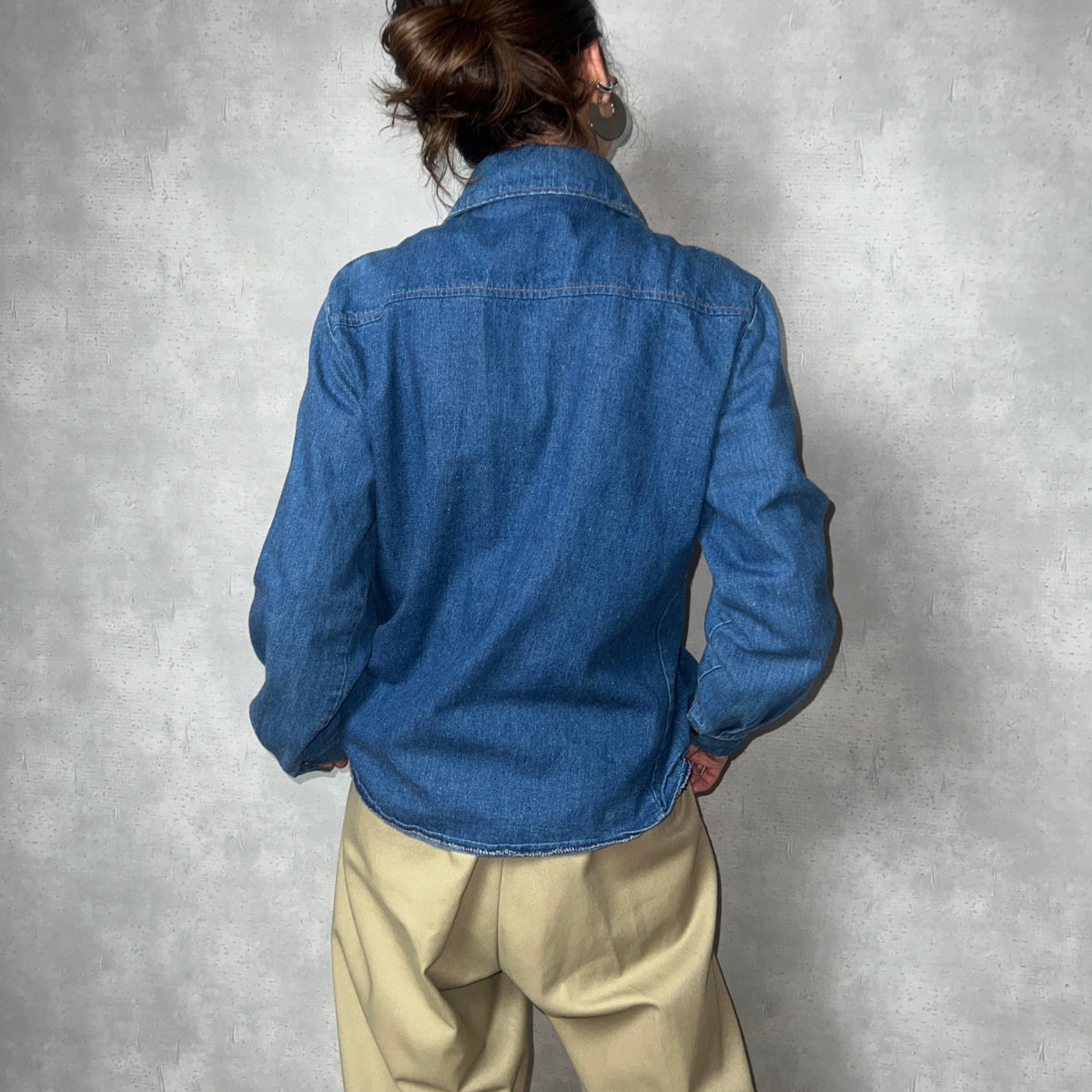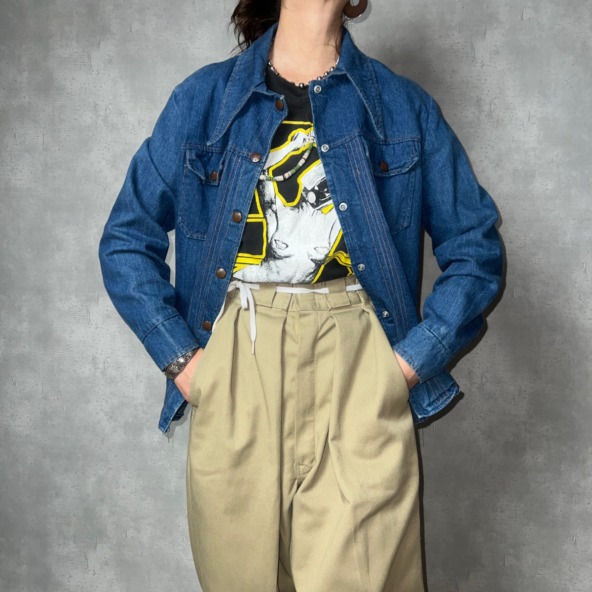 70'S特有のデカ襟がアクセントのデニムシャツ(JKT)。