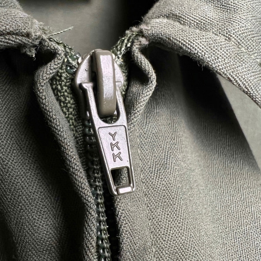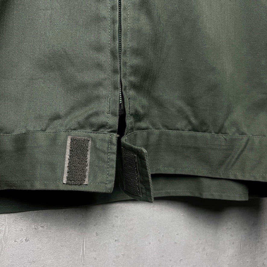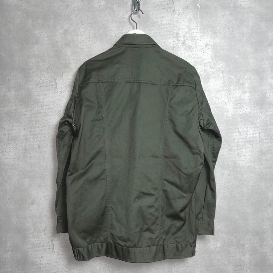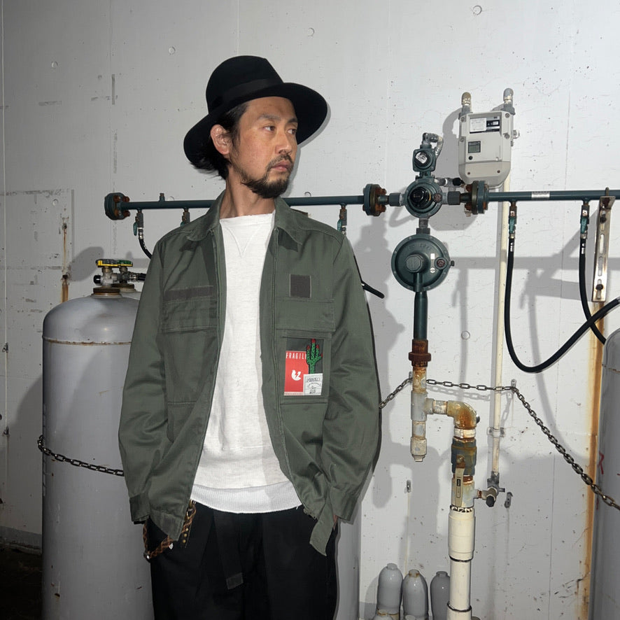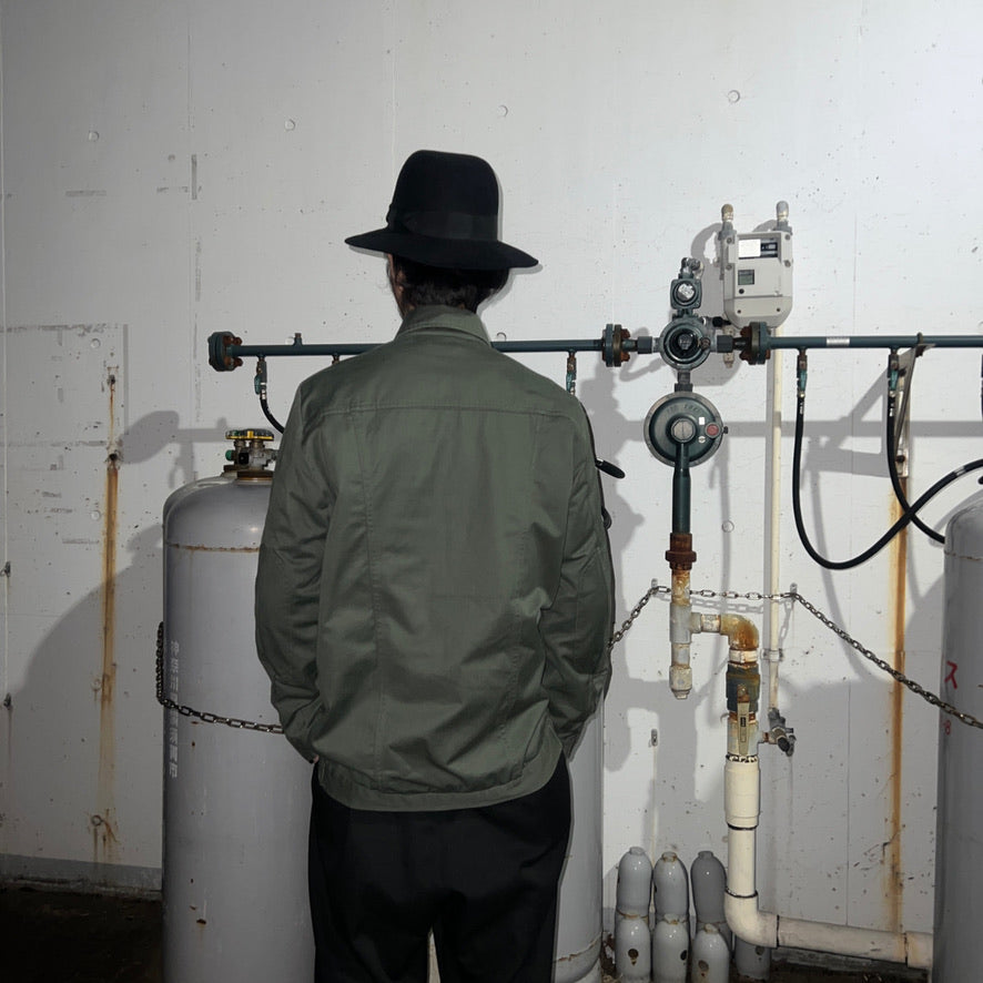 フランス軍のジャケット。フランス軍らしい綿の生地感と濃いオリーブグリーンがスタイリングが組みやすく、なんと言ってもポケットに目を奪われ買い付けたもの。