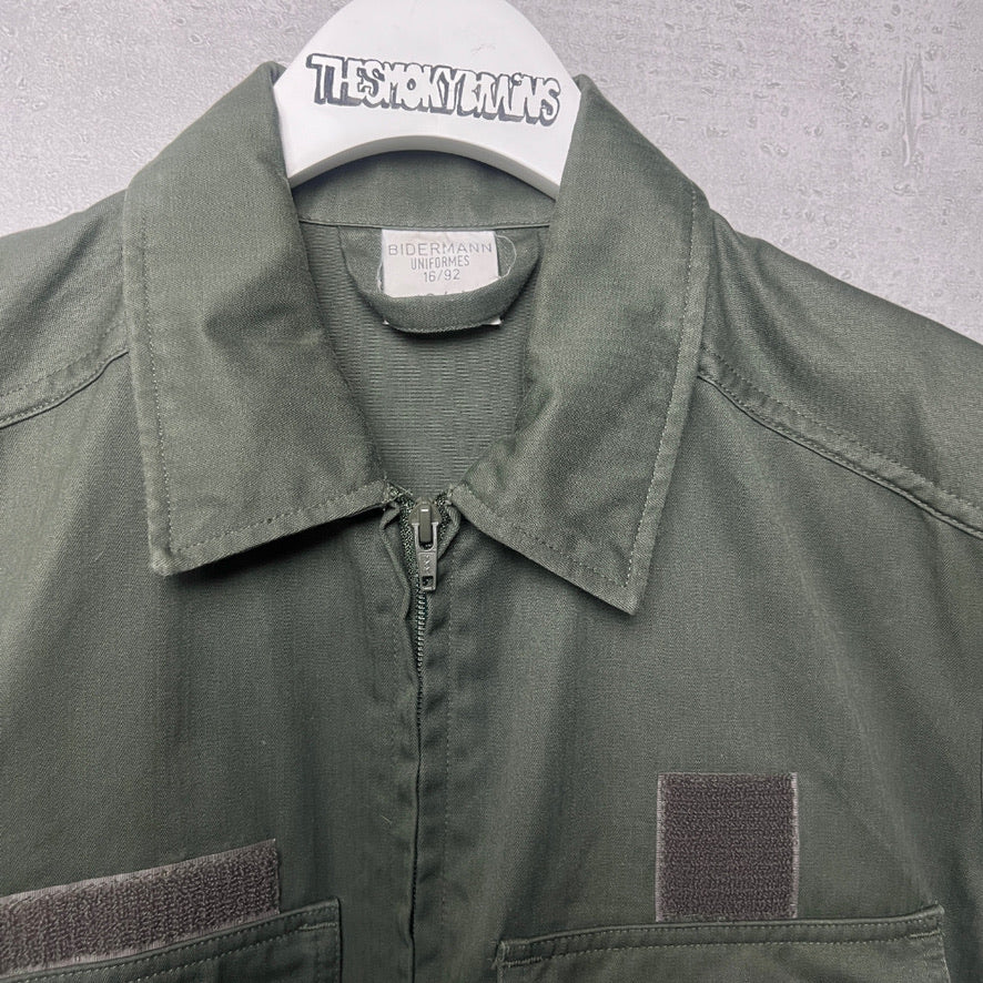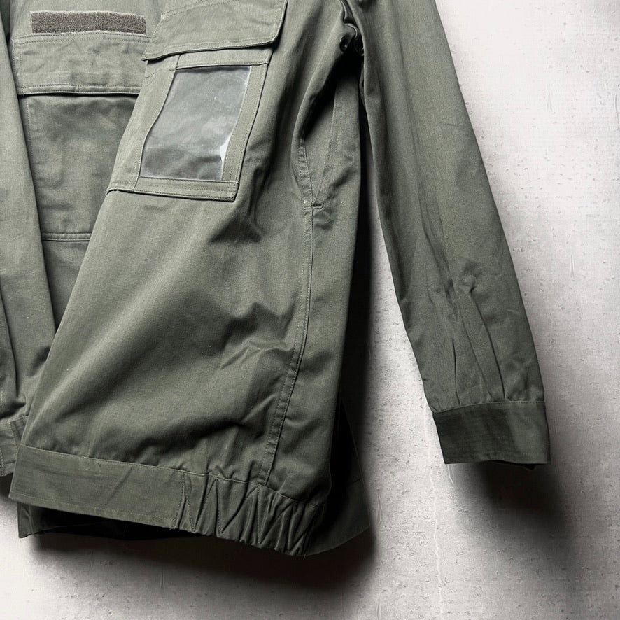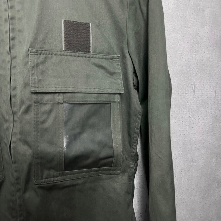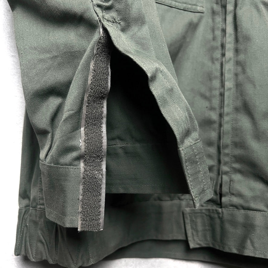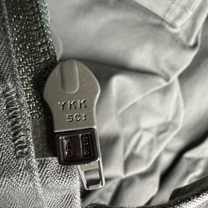 フランス軍のジャケット。フランス軍らしい綿の生地感と濃いオリーブグリーンがスタイリングが組みやすく、なんと言ってもポケットに目を奪われ買い付けたもの。
