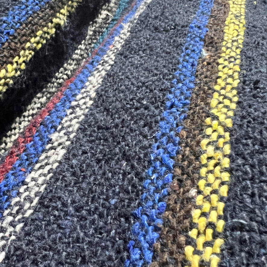ネイビーベースのマルチカラーと、このピッチが細いストライプのバランスが絶妙。