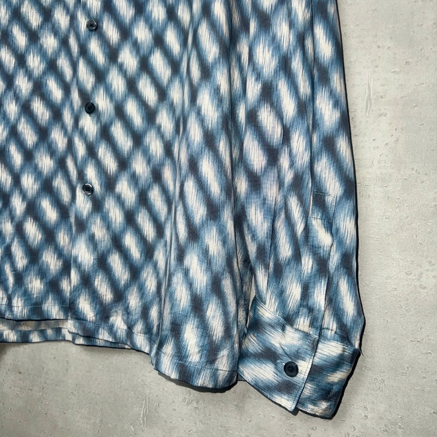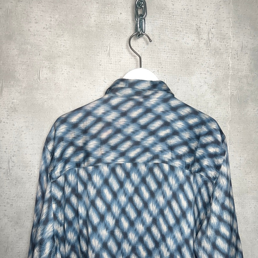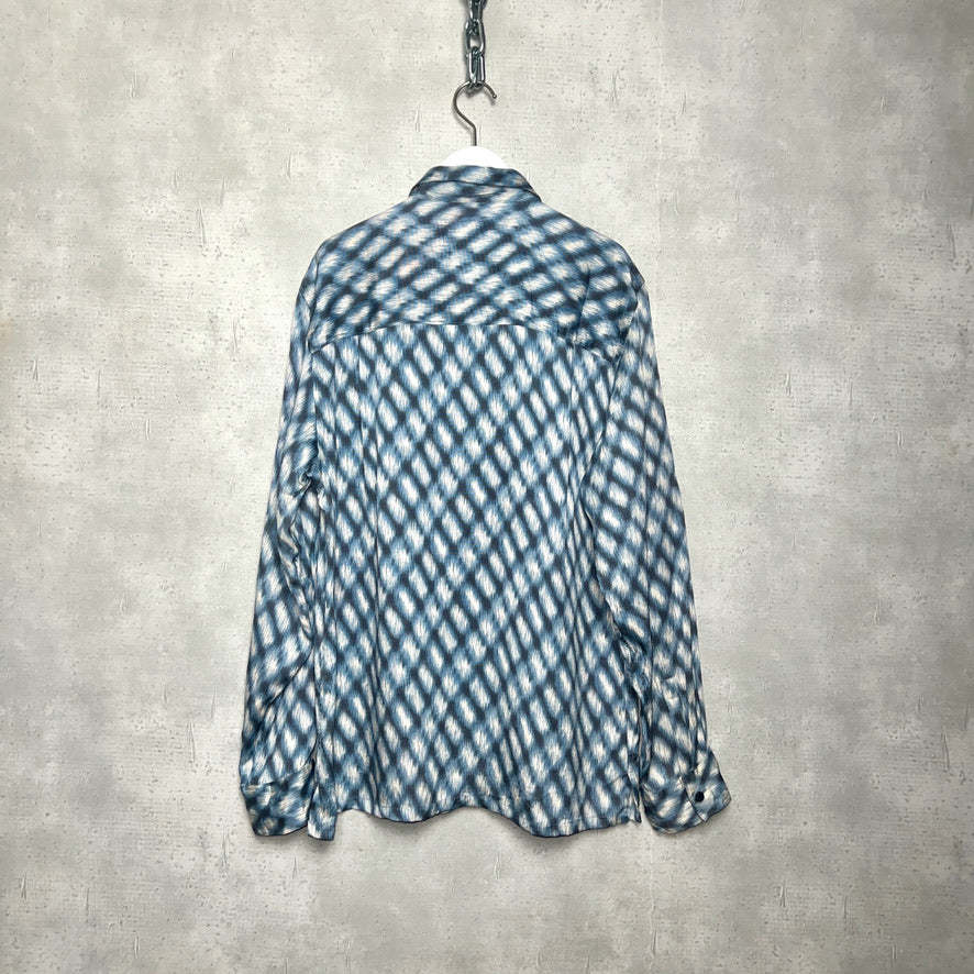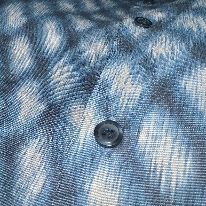 滑らかでとろみのある上質なシルク100%の生地感と、モザイク調プリントの雰囲気が絶妙なこのシャツは、あえてメンズのシャツを女性独自のスタイルに着崩してもらいたくセレクト。