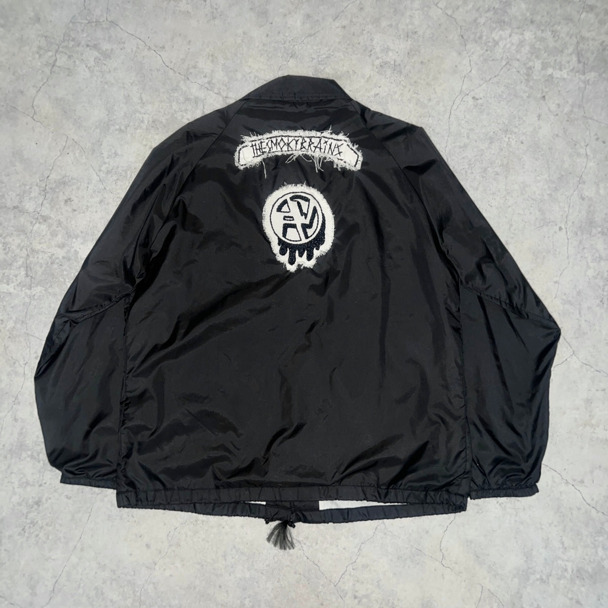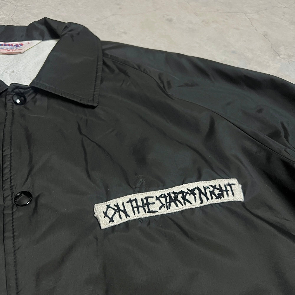 80-90'sUSA製[mvp]ボディのコーチジャケットの背面に我々のショップ名とF/W(FUCK WAR)を敢えてわかりずらくデザインを溶かしたマークを刺繍した。