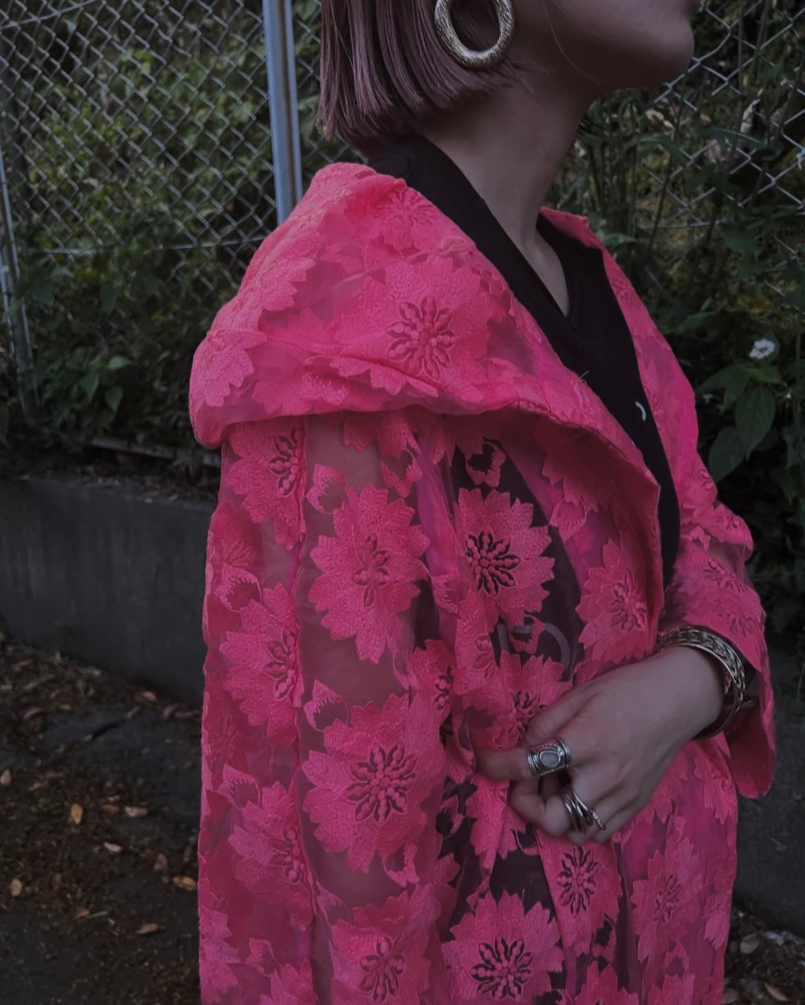 オーガンジー刺繍のオーバーコート。