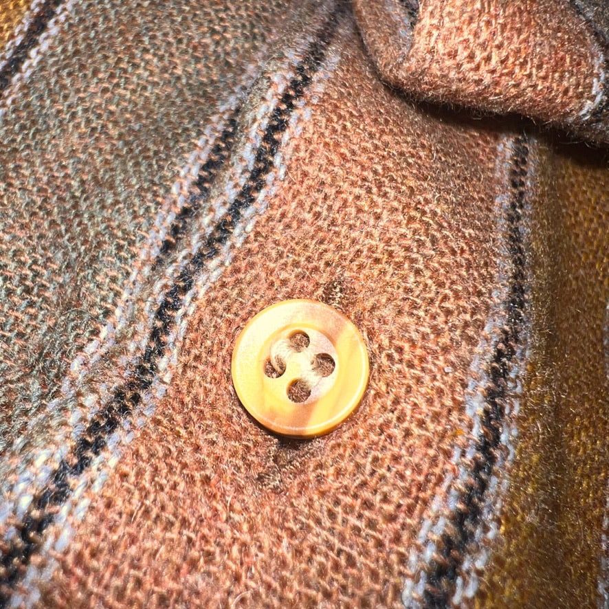 1枚で着てもこれだけ雰囲気のあるシャツはなかなか巡り会えない。素材はウールメインで暖かいので秋~春先まで活用できるのが嬉しい。