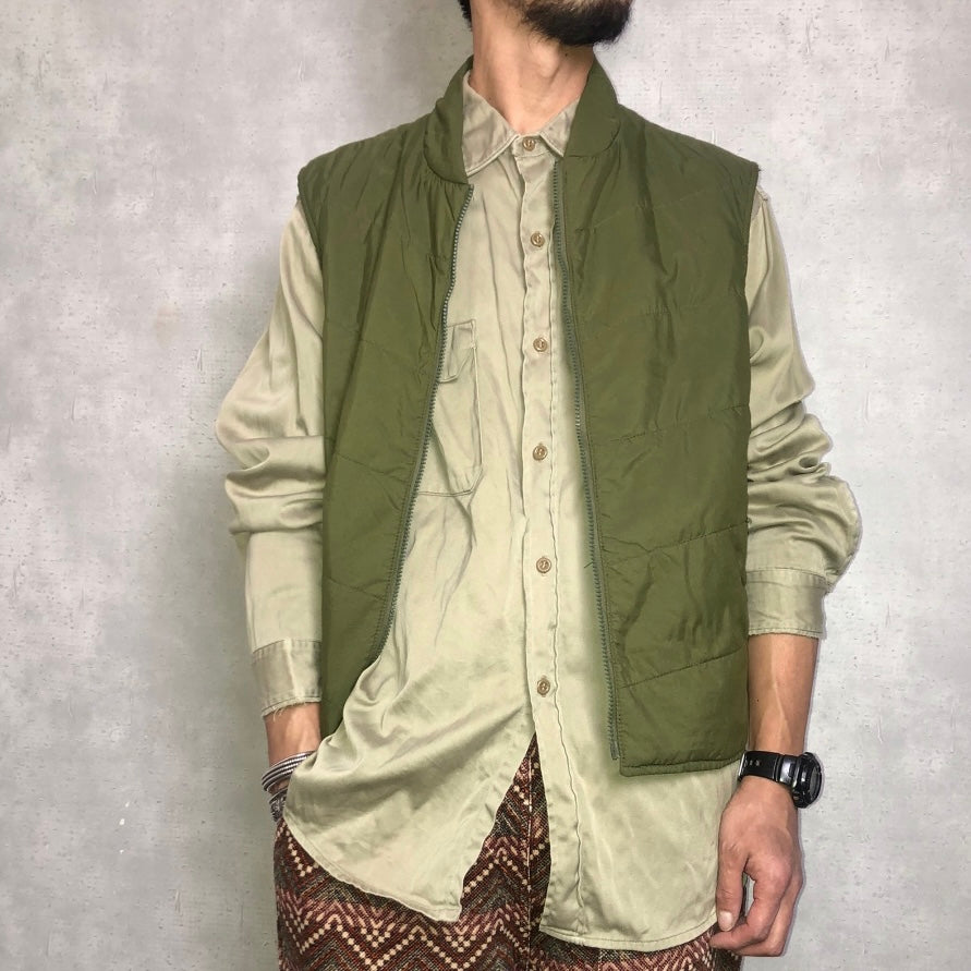 中綿入りのため、春先や秋口の羽織りとしても、また冬場はジャケットやウールのアウターのインナーベストとして、通年の使用が可能。