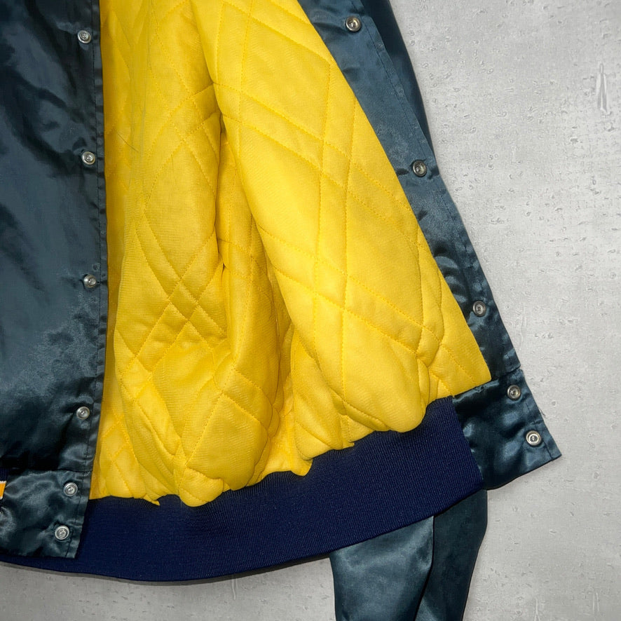 今回出会ったのは[MISTER FOX]社のレアなボディで、80'Sのアメリカものらしいとも言えるオールドスクールなシルエットや、首周りの詰まり具合にリブの配色、またネイビーナイロンの光沢感や、インナーのイエローのキルティングなどが絶妙。