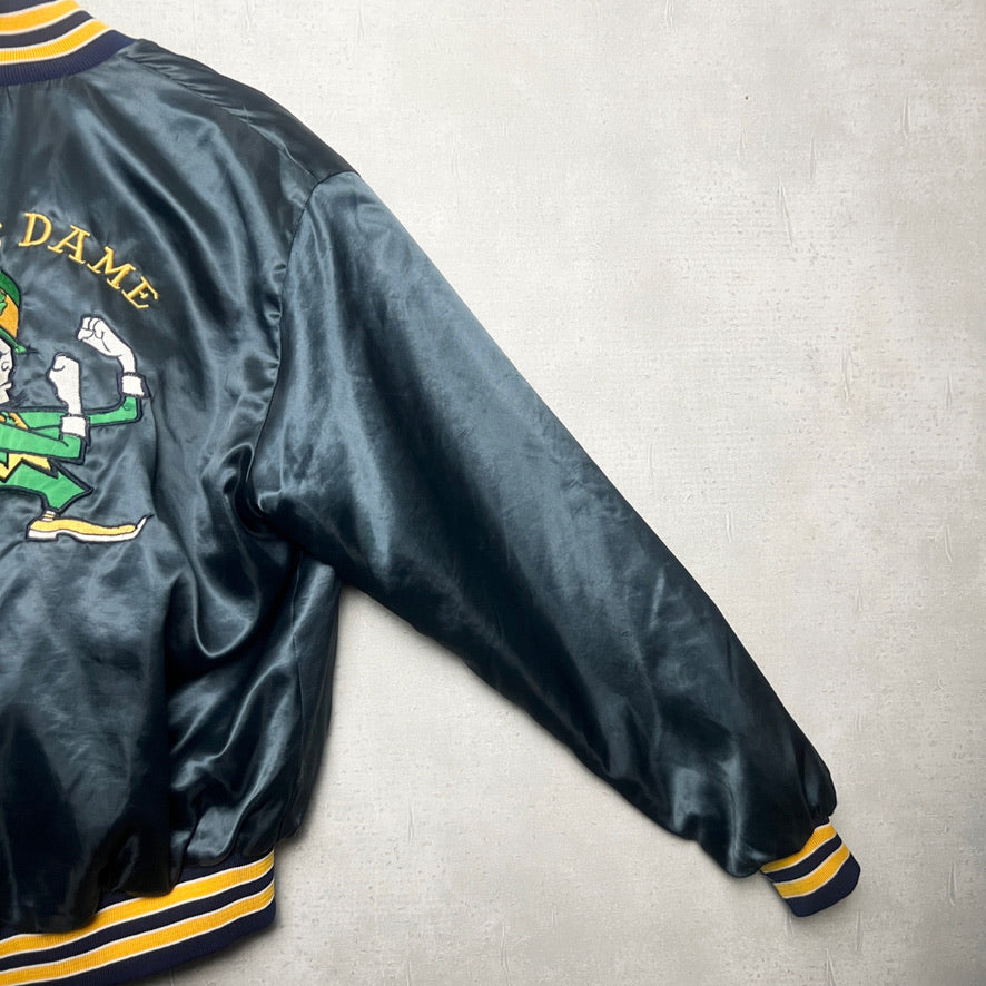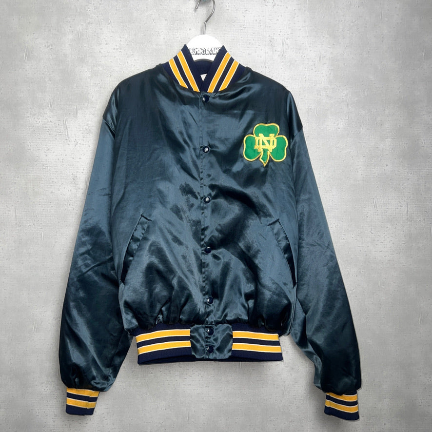 アメフトの超名門、ノートルダム大学''FIGHTING IRISH''のナイロンタイプのスタジャン。このFIGHTING IRISHは全米で大人気クラブで、NFLにも多くの選手を輩出しているため、背中のロゴを見たことがある人も多いはず。