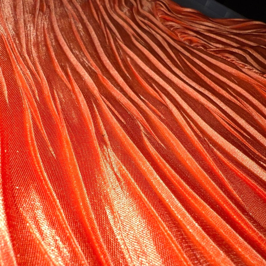 しなやかでランダムなプリーツに、裾や袖口はパイピング仕様のサテンブラウス。