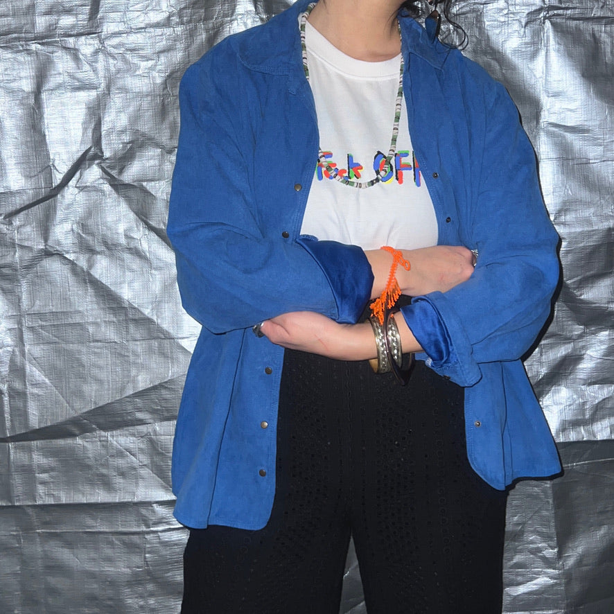 US古着で見つけた[LEMON GRASS STUDIO]のフェイクスウェードシャツ。