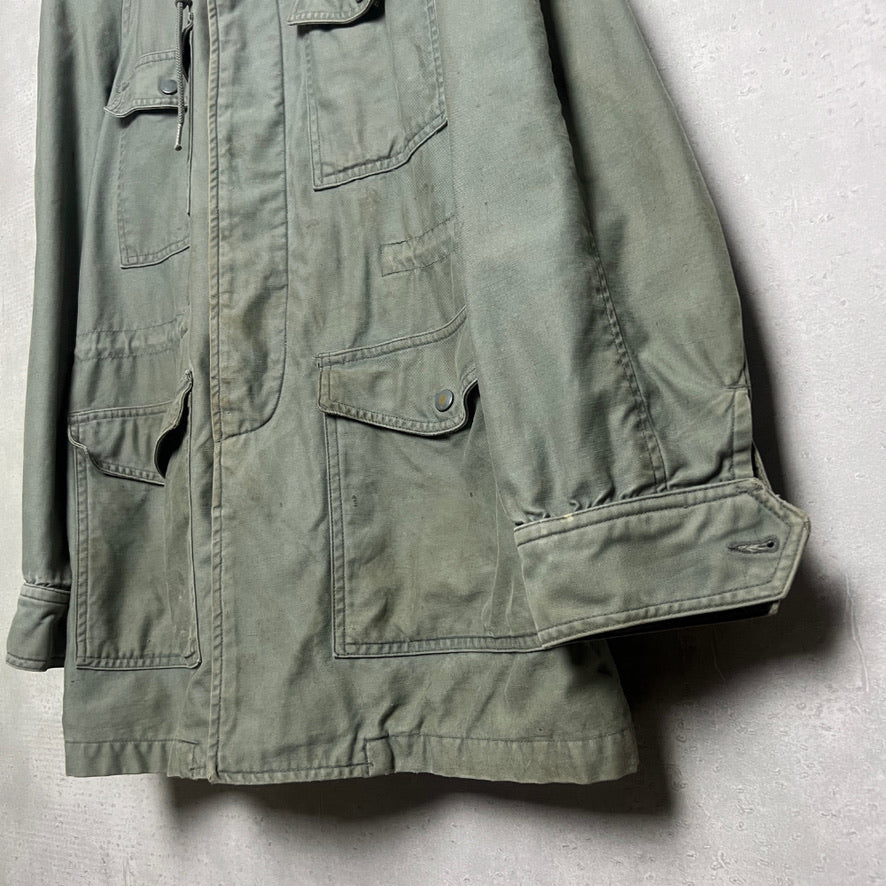 50年代に採用され、M-65の登場まで使用されていた USミリタリーの実物ジャケットで、襟元が牛の耳に似ていることから、通称「キャトルジャケット」とも言う。