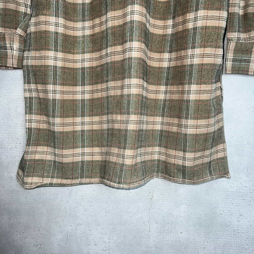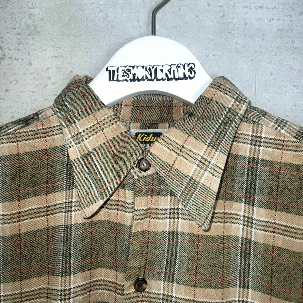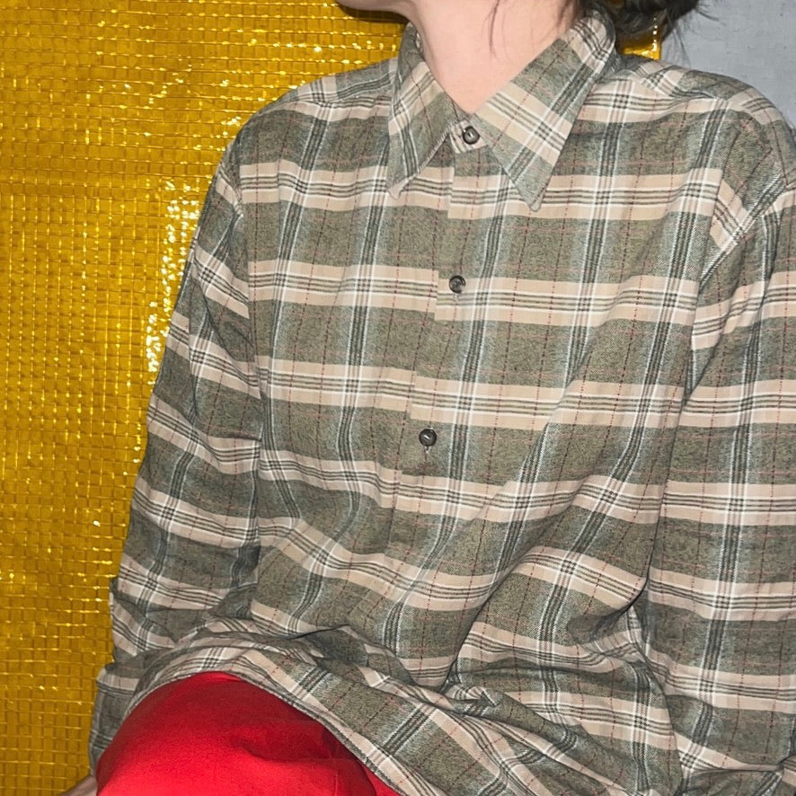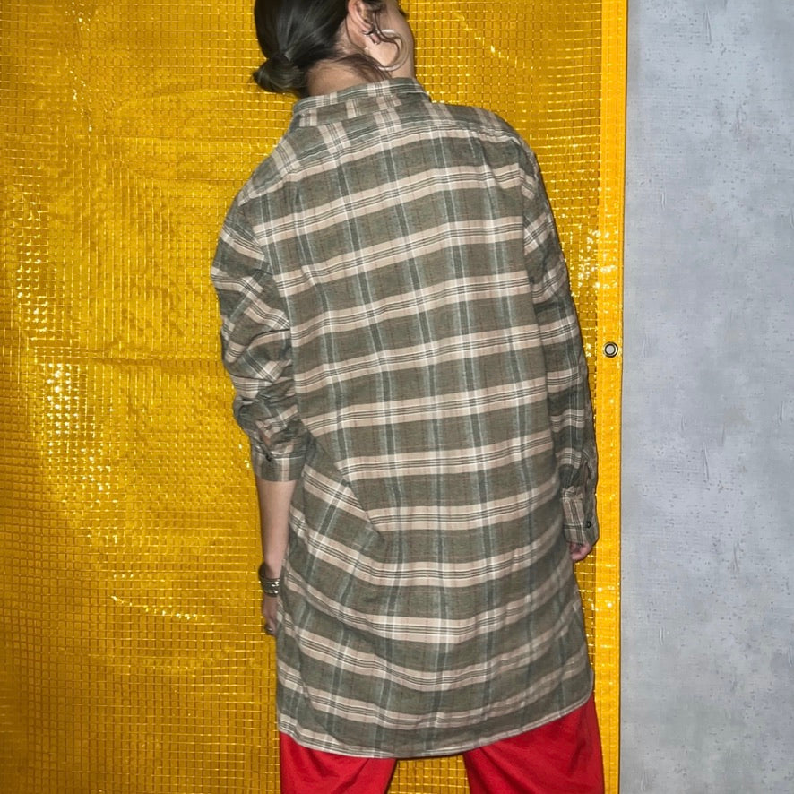 因みに「グランパシャツ」とは元々ルームシャツ(スリーピングシャツ)として作られているため、ソフトで快適な着心地が特徴。ルームシャツとはいえ、現代は街着として使用されており、P/Oタイプで着丈が長く、ゆったりとしたシルエットなので、ビックシャツやワンピース感覚でラフに着られる。