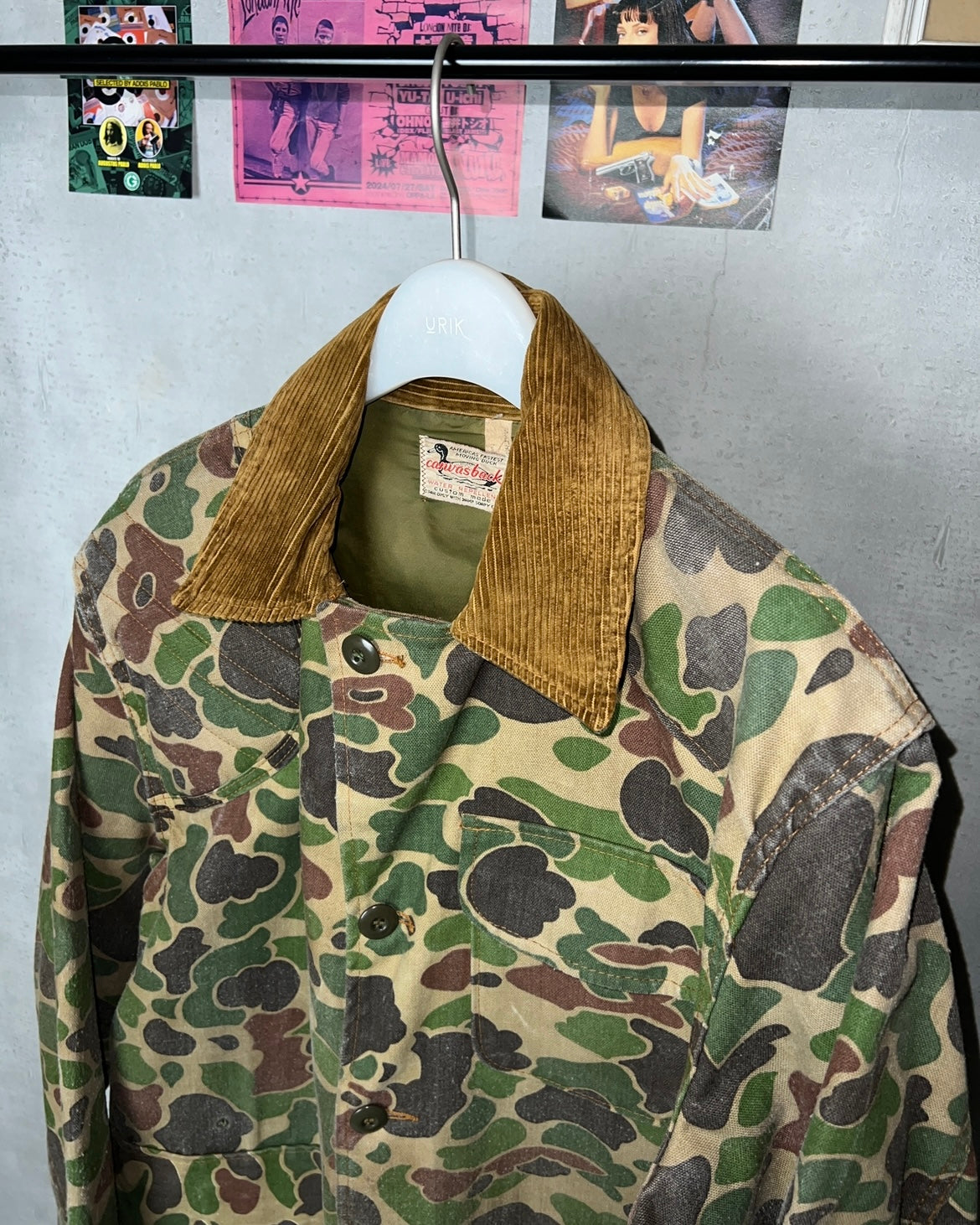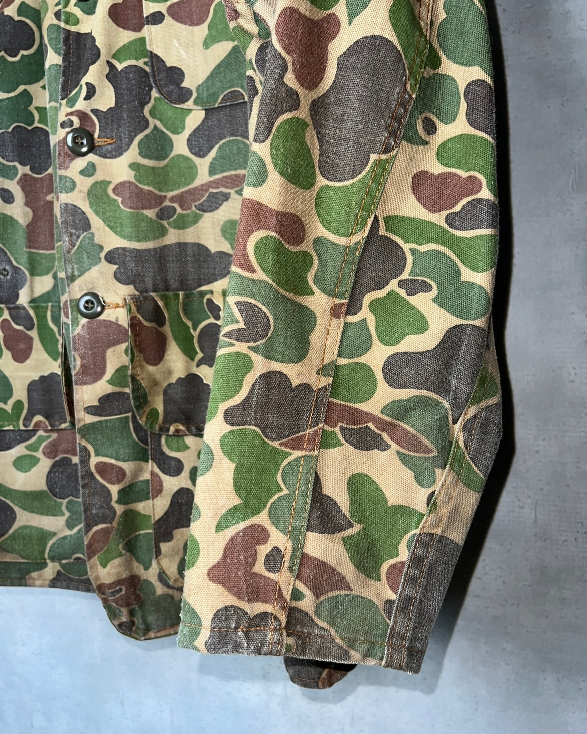 おそらく60年代頃のUSA製と思しき[Canvasback]のハンティングジャケット。元々アメリカ陸軍でデザインされた近年人気の高いダックハンターカモは、ハンティング用として流通したもの。