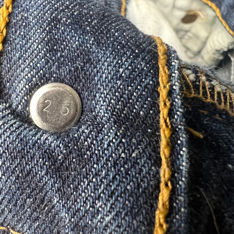 これは90'S後半のベルギー製のもので、耳(赤耳ではないが)とスソ、膝のアタリ、そしてヒゲがくっきりと出ていて、更にはきちんと縦落ちしているため、変にのっぺりとしないこの雰囲気が絶妙過ぎて買い付けた一品。