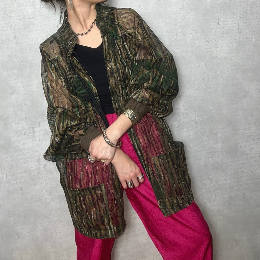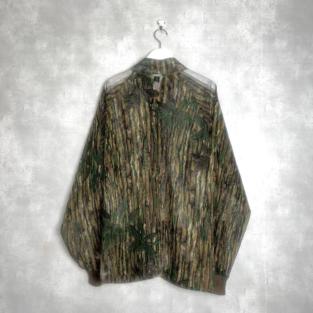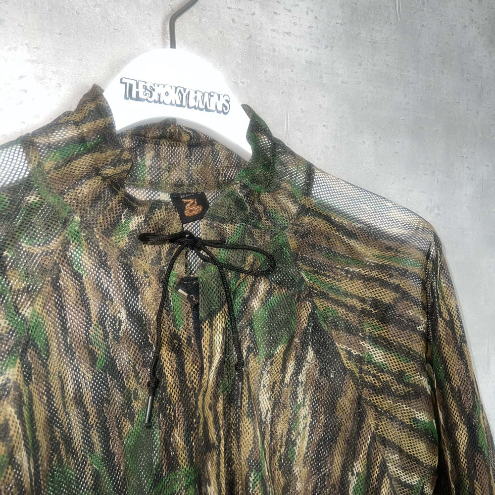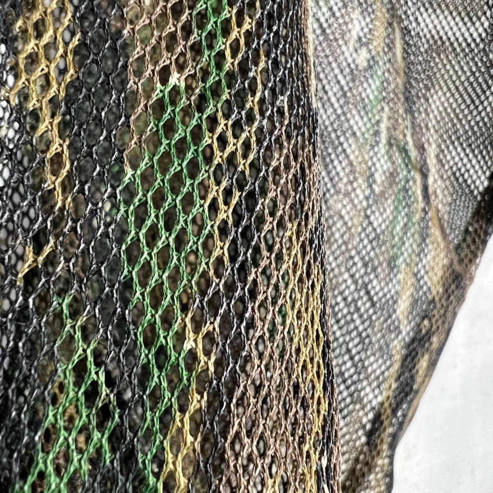 そのため袖はリブ仕様、ネック部分も絞る事が出来るなど、機能面に優れており、何といってもメッシュ×リアルツリーの雰囲気が抜群にカッコイイ。