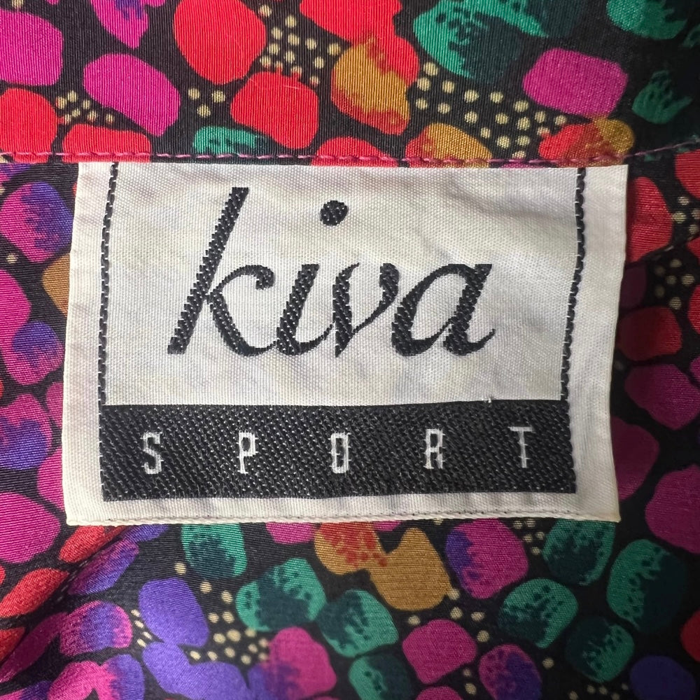 色鮮やかなDISCO調のこのシャツワンピースはUSブランド、[Kiva SPORT]のもの。