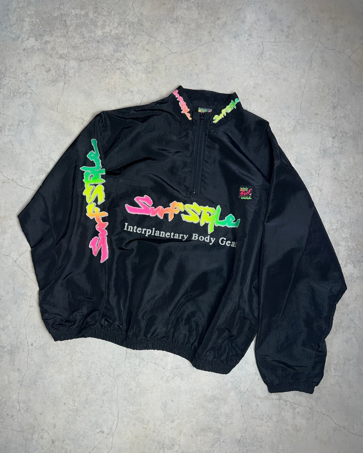 まさにプリントのネオンの色使いやロゴの字体が何とも90'Sらしいとも言える、ハーフジップタイプのP/Oブルゾン。